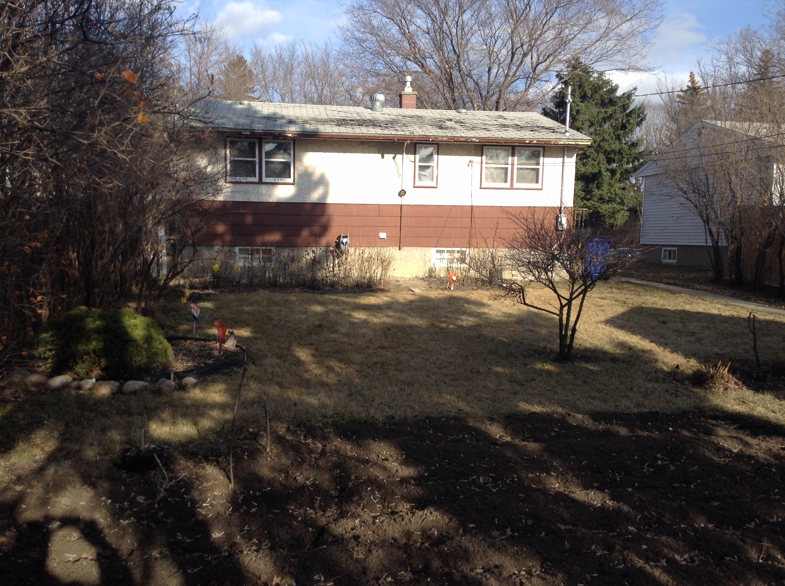Pond. There gonna be pond. Big pond. Also there gonna be new paint job and yes, new roof. I know. After raking up 3-4 shingles from the flower bed I looked up and gasped a little bit. Ok I gasped a lot.